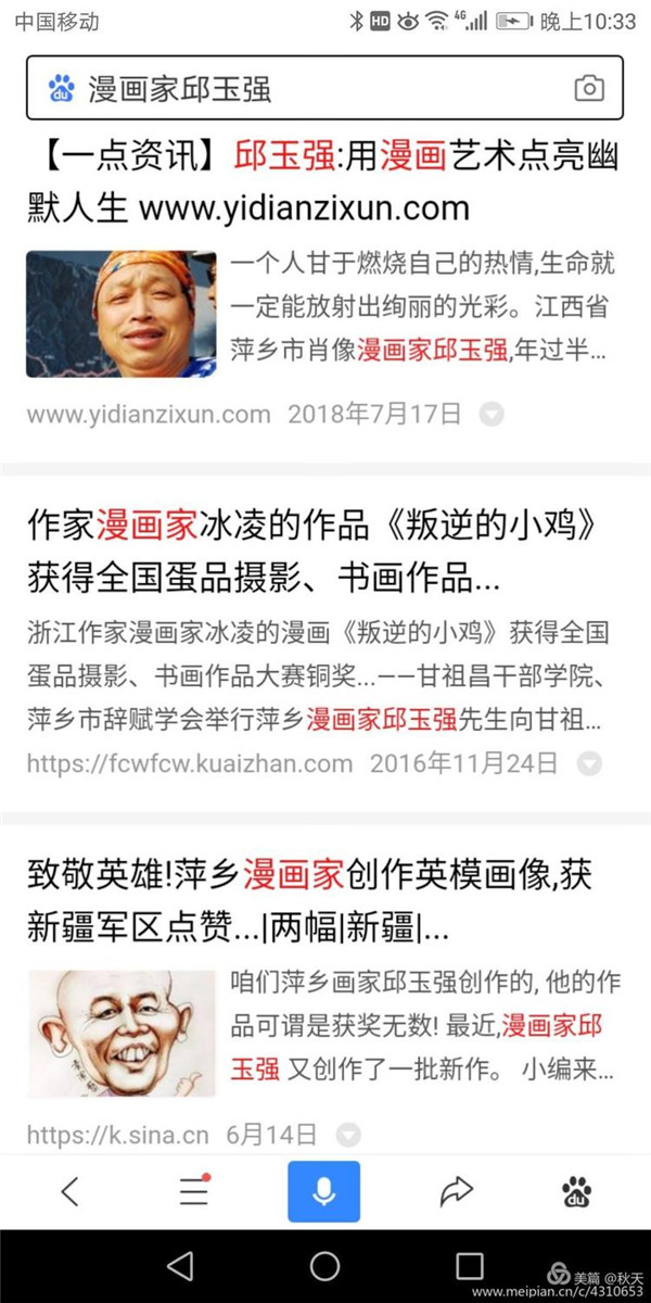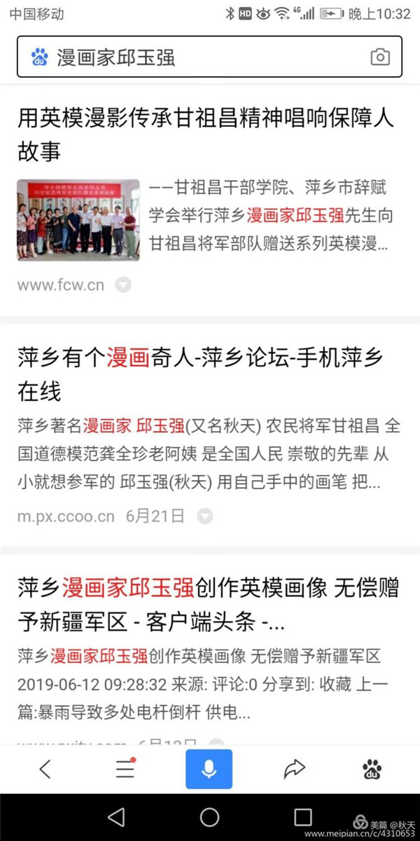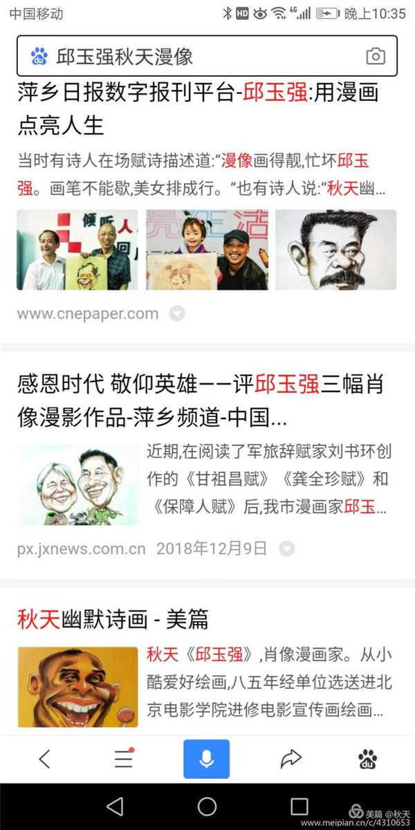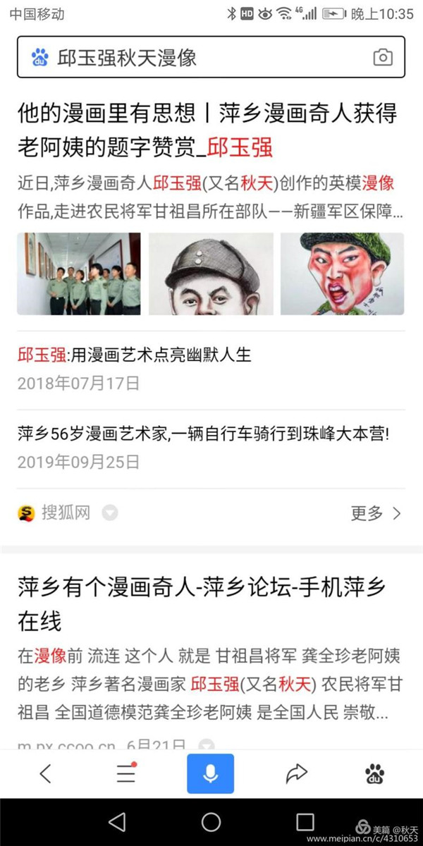 为共和国功勋画漫像 在新中国成立七十周年之际,国家主席习近平在人民大会堂,为国家作出杰出贡献的八位功勋颁发了共和国勋章。正在电视机前观看授勋的我市知名漫像家邱玉强,心情非常激动:他们的事迹太感人心了,他们为共和国成长作出了杰出贡献,人民应该记得他们。当即萌生了为八位勋章获得者创作漫像的想法。 通过查找翻阅八位功勋个人资料和影像资料,深入了解他们的事迹后,邱玉强了解到,屠呦呦是中国首 位诺贝尔医学奖获得者,也是历史上第12位获诺贝尔医学奖的女性。这样一个为人类的健康做出巨大贡献的科学家,是全民尊敬的人和学习的榜样。 中国氢弹之父于敏,放弃光明的学术前途,隐姓埋名,研究氢弹,为我国“两弹一星”研制作出杰出贡献。 袁隆平,世界杂交水稻之父,育种专家,为解决世界粮食缺少作出了杰出贡献。 申纪兰,杰出妇女代表,是中国唯 一 一位连任十三届全国人大代表。 孙家栋,科学家、中国“两弹一星”功臣,卫星总设计师,从事航天工作60年。 李延年,解放战争和抗美援朝战争老英雄、老党员,居功不自傲,自身要求严。 黄旭华,中国核潜艇之父,为核潜艇的研制作出了重要贡献。 老军人张富清,出生入死,多次荣立战功,特等功臣,多次身付重伤,习总书记授予他“时代楷模”称号。 功勋们的事迹深深地打动着邱玉强,他一一绘出草图,几易数稿,画至凌晨。为了赶出作品,他不顾自己身体不好,一创作就是十几个小时,几次因长时间坐在创作室,腰都不能直起来,眼睛盯着白色画稿,疲劳胀痛。 经过近十天的日夜绘制,邱玉强终于完成了自己的心愿,创作了共和国八位勋章获得者画像。发布在网络上和朋友圈,受到大家交口称赞。 人民曰报网报 价值中国网报 中国书画名家专访网 安源工人报 中国美网报 天天快报 搜狐网报 网易新闻报 神州网报 金融号网报 文卫教育网报 天天漫画网报 飞扬头条网报 一点资讯网报 社会头条网报 外号网报 手机用户50一50网 半江壁山 中文网报 世界服装鞋帽网报 第一观点网报 如朋友想了解邱玉强,欣赏秋天笑画,可在百度等搜索网上写上漫画家邱玉强或秋天漫像就可搜索秋天的笑话和有关报导。谢谢。 蘑菇云彩腾火焰, 沙漠雷电震天庭。 国家功勋皆英模, 改革先锋科技星。 民族多脊梁, 强盛有希望。 漫像绘功勋, 祖国更兴旺。 共和功勋人人夸 盈盈笑脸上漫画 秋天拳拳奉爱心 一片冰心在玉壶 罗雁萍老师 |
