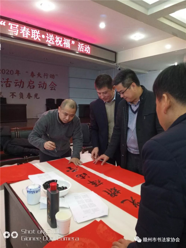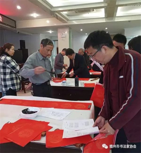 世泰丰收景,民安幸福年,为深入学习贯彻习近平新时代中国特色社会主义思想和党的十九大精神,落实中宣部《关于学习贯彻习近平总书记重要指示精神 做新时代“红色文艺轻骑兵”的通知》要求,丰富人们春节文化生活,营造浓厚的节日氛围,满足人们节日文化需求,2020年1月3日,赣州市书协组织书法家深入生活,走进农行,泼墨挥毫,书写春联福字,计600余幅,深受企业员工好评。参加活动的有赣州市书协顾问李安华、赣州市书协主席张声林、副主席郑人凤、李秀忠、秘书长刘小明、赣州书法篆刻研究院院长欧阳斌。 |