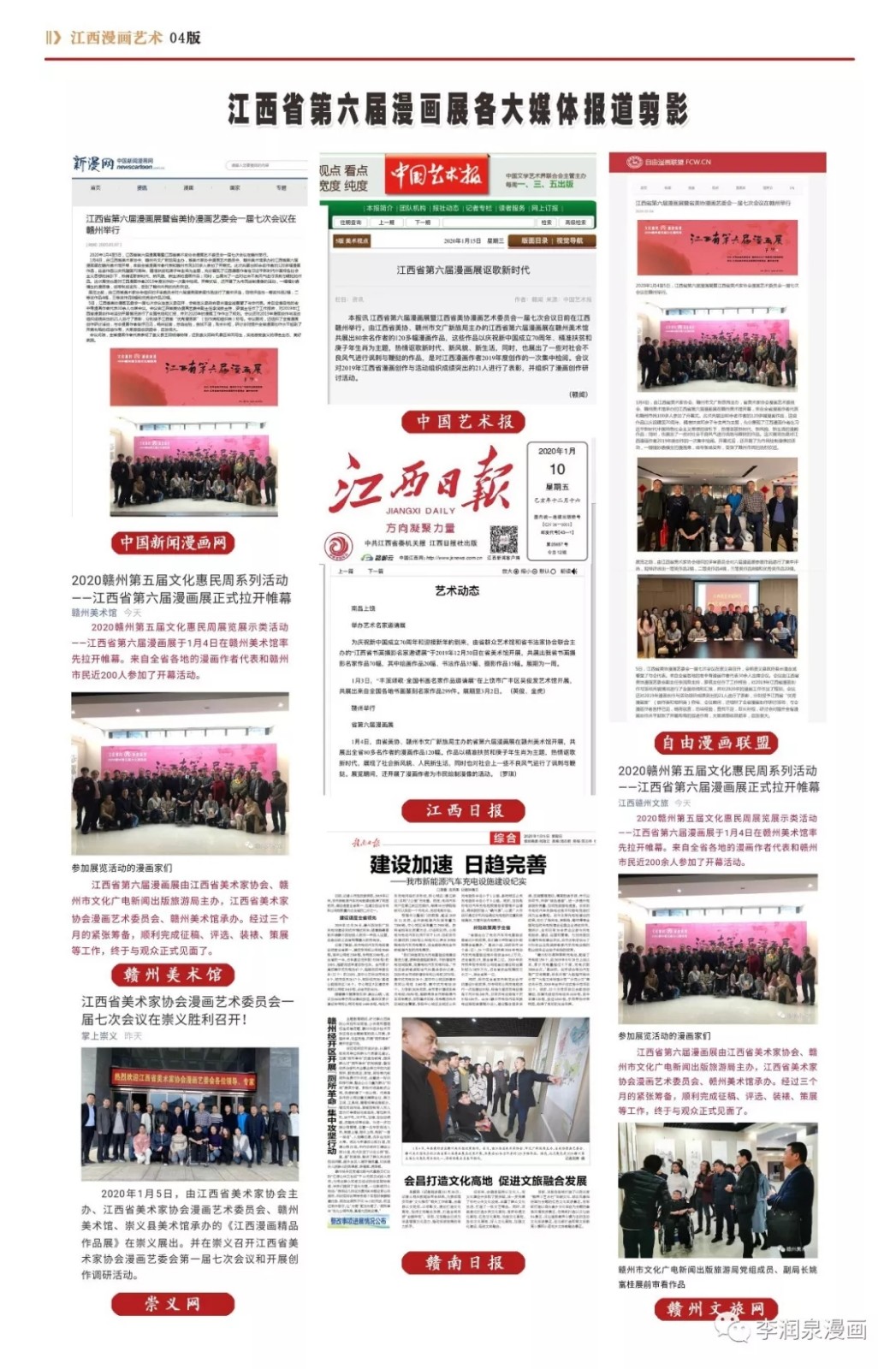 1月4日,江西省第六届漫画展在赣州美术馆举行开幕式;1月5日,江西省美协漫画艺术委员会一届七次会议在崇义县阳明国际酒店召开。1月16日,《江西漫画艺术》(第一期)对展览活动和会议情况进行了全方位报道。 请看图—— 国内新闻媒体对此次展览、会议和相关活动进行广泛了宣传报道,现将部分媒体发布内容展示如下—— 《中国艺术报》(中国文联机关报) 《中国新闻漫画网》(中国新闻漫画研究会网站) 《江西日报》(中共江西省委机关报) 《赣南日报》(中共赣州市委机关报) 《自由漫画联盟》 《江西赣州文旅》 《赣州美术馆》 |