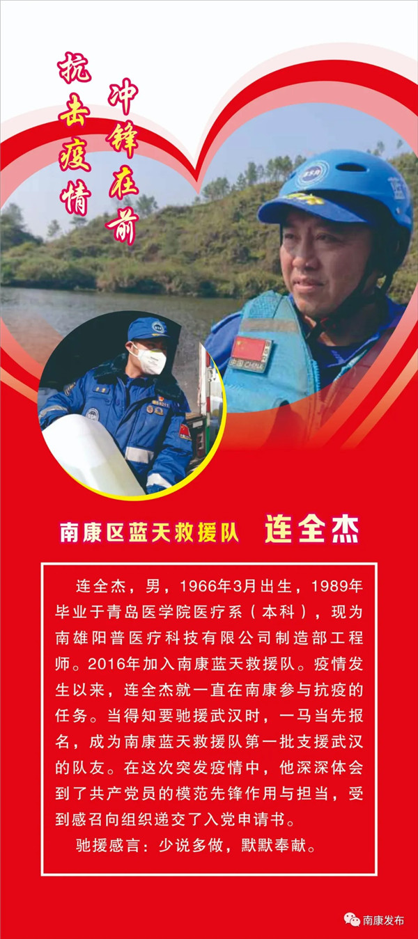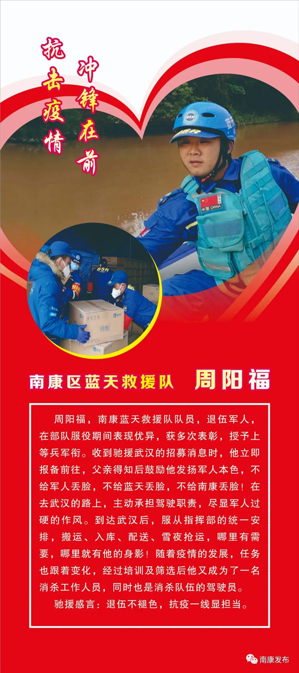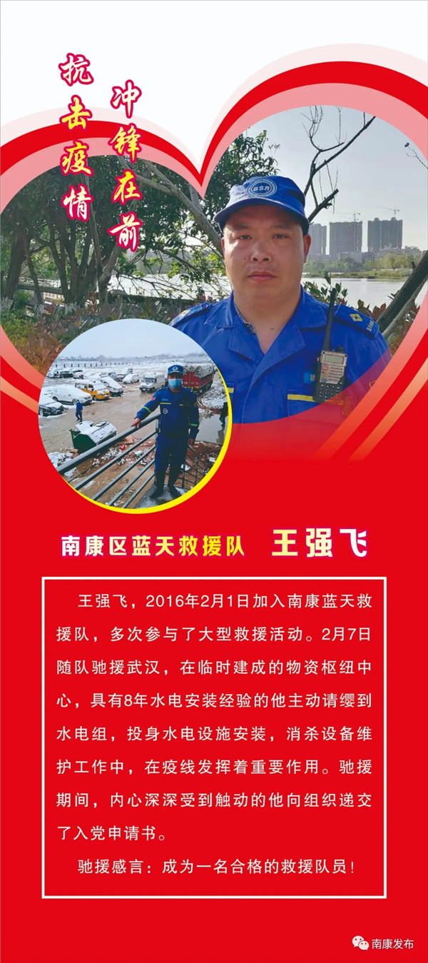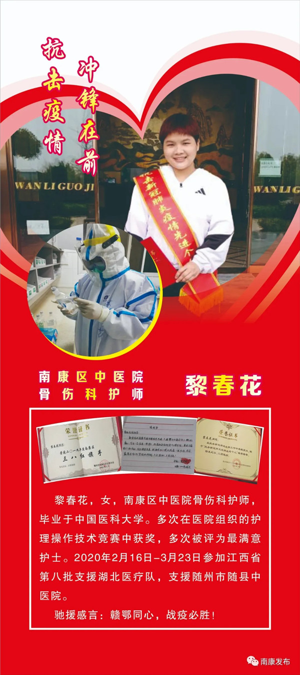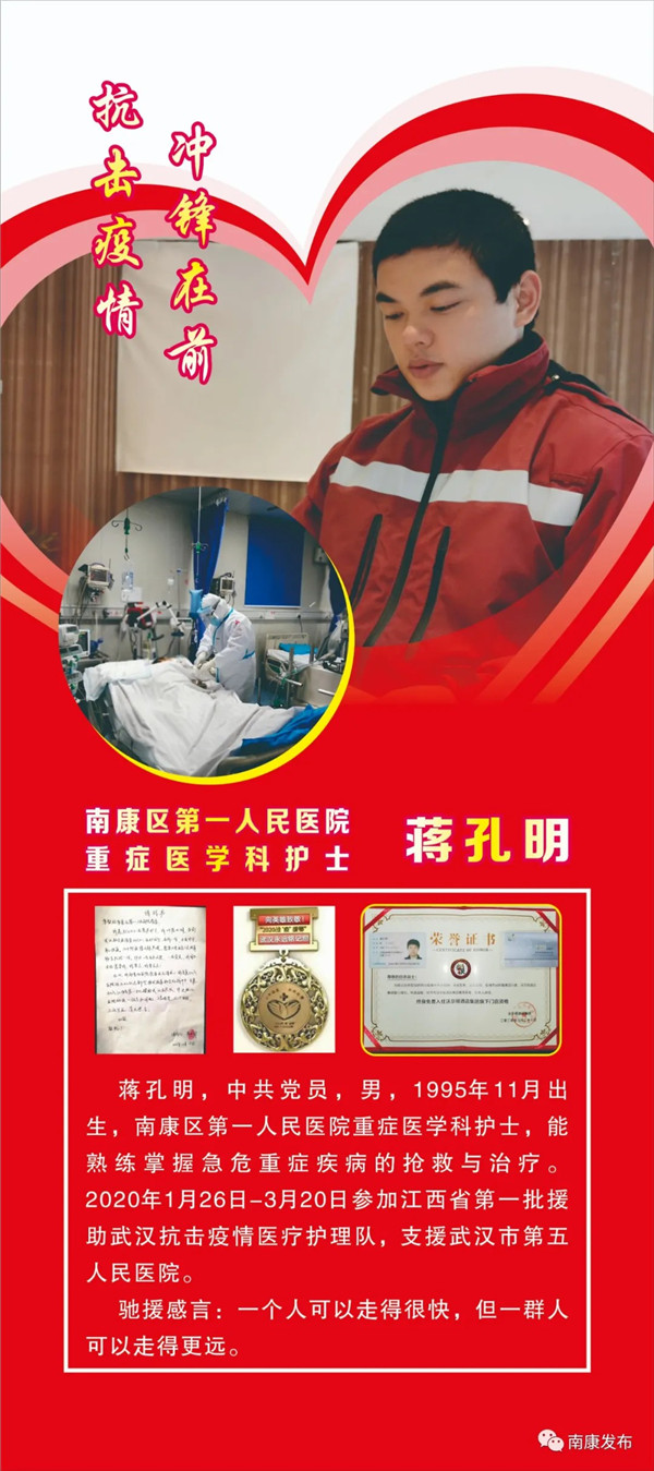 寒风凛冽之时 他们从中国实木家居之都南康出发 不惧生死、逆行出征 春色正浓之际 他们从英雄的武汉城归来 不负重托、胜利凯旋 9名援鄂医护人员和6名蓝天救援队员 回家了! ▲点击观看视频 白衣执甲行千里 英雄凯旋彩云归 我们追的星 就是我们的抗疫英雄 是86万南康人民的骄傲 他们是 援鄂医护人员 赖永辉、蒋孔明、罗玉芳、钟海丽 周忠忠、贾龙睿、黎春花 蓝希燕、梁倩英 蓝天救援队员 邱诗淦、连全杰、吴 健 王强飞、林春燕、周阳福 15个名字 每个名字都闪闪发亮 向逆向而行奔赴疫区的英雄们致敬! 他们选择在危难时刻逆行而上 他们无惧危险,千里驰援 把制服穿成了军装 他们的名字,值得被我们记住! END |