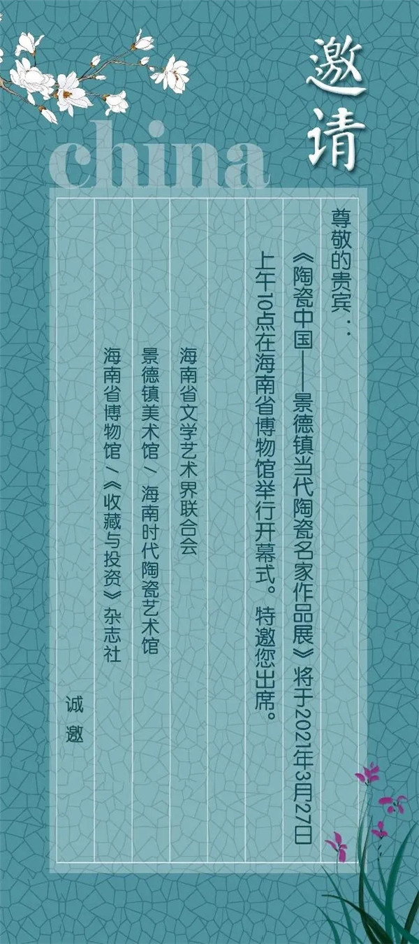 展讯||陶瓷中国--景德镇当代陶瓷名家作品展即将在海南省博物馆开幕 ![]() |