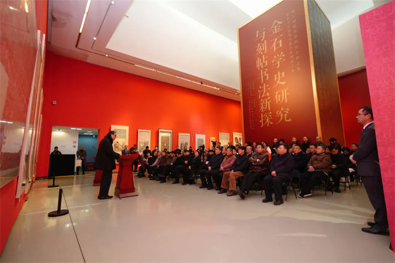 11月25日,“缘于图像背景的社会和艺术·金石书法研究与创作系列展——金石学史研究与刻帖书法新探”在中国国家画院美术馆开幕。此次展览由中国国家画院、西泠印社主办;中国国家画院书法篆刻所、中国书画收藏家协会金石碑帖研究委员会承办。 开幕式现场 中国国家画院院长刘万鸣,西泠印社副社长兼秘书长陈振濂,中国国家画院书法篆刻所原所长、京华印社社长魏广君,西泠印社副秘书长范正红,《中国书法》杂志社社长朱培尔,中国书画收藏家协会会长张德俊在开幕式上先后致辞,刘万鸣宣布展览开幕。开幕式由中国国家画院副院长徐涟主持。 部分嘉宾合影 中国文联原党组成员、副主席杨承志,中国文艺评论家协会主席夏潮,中国国家画院党委书记燕东升,中国国家画院原院长卢禹舜,中国国家画院原副院长曾来德,中国书法家协会原副主席申万胜,全国政协书画室副主任陈洪武,中国书法家协会副主席张继、叶培贵,人民美术出版社原社长郜宗远,中国文联书法艺术中心原主任刘恒,西泠印社副社长李刚田,中国文联书法艺术中心副主任高庆春,西泠印社党委委员、社委会副主任邵建华,西泠印社副秘书长许雄志,中国国家画院艺术家洪厚甜、王厚祥、蔡大礼、魏杰,中国国家博物馆书画院院长杨军,中国艺术研究院篆刻院院长尹海龙,中国国家画院外聘研究员王学岭、龙开胜、陆明君、王文英、陆宗润、黄胜凡、文永生、张晓东、崔胜辉、蔡梦霞、蒋再鸣、李晖、逯国平、张机,北京师范大学艺术与传媒学院书法系主任虞晓勇,西泠印社社委会艺术创研处处长丁竹英,首都师范大学中国书法文化研究院副院长孙学峰,《收藏家》杂志社原社长、主编刘昱,中国美术馆藏品征集保管与修复指导委员会副主任薛帅杰,中国书画收藏家协会金石碑帖研究委员会主任李汉臣、副主任张深伟,西泠印社社员岐岖、郑志群、古菲、陈根远、曹祐福,海岱美术馆馆长袁慧敏,济宁汉文化博物馆馆长高成丰,北京杏坛美术馆馆长黄和平,吴式芬金石文化研究会副会长郭庆利,河南印社理事樊江涛,中国书画收藏家协会金石碑帖研究委员会办公室主任李爱凤,中国国家画院办公室主任董雷、人事处处长刘博涵、山水画所所长方向、油画所所长赵培智、版画所所长沙永汇、雕塑所所长邓柯、理论研究所所长陈明、教学培训部主任邱雷、交流合作部主任张楠、美术馆馆长李虹霖、总务处处长任明辉、信息中心主任刘德峰、书法篆刻所副所长谢小铨、办公室副主任吴笛、党办副主任玄明加、创研规划处副处长康雷、教学培训部副主任程兴林,美术馆副馆长常欣、杜浩,《中国美术报》社社长兼总编辑金新、副总编辑冯知军、副社长颜培大,中国国家画院艺术家邢少臣、吴迅、王东声、党震、刘立宇、徐冬青、唐朝轶、梅跃辉、张蕾、申卉芪、王瑛、任赛、付振宝、陈散吟、任军伟、王聪丛等嘉宾应邀出席本次展览开幕式。 中国国家画院院长刘万鸣致辞并宣布展览开幕 刘万鸣表示,为系统研究书法史迹,深挖传统,推动书法的全新发展,中国国家画院书法篆刻所自2020年开始,采用“品”的方式从金石书法研究入手,先后举办了“缘于图像背景的社会和艺术•金石书法研究与创作系列展”,本次“金石学史研究与刻帖书法新探”展是该项目的系列展之五,此次展览把金石与刻帖以历史发展的脉络串联起来,放在一起对比研究,并结合当代理论研究和创作探索立体呈现,旨在全面梳理和展示古代金石、刻帖古迹,以促进金石、刻帖书法的当代研究与创作发展。据刘万鸣介绍,本次展览自筹备以来便得到西泠印社、中国书画收藏家协会金石碑帖研究委员会、西安博物院、河南印社、山东印社、京华印社、终南印社、陕西汉唐石刻博物馆、济宁市汉文化博物馆、海岱美术馆、吴式芬金石文化研究会等单位的大力支持,征集金石、刻帖360余件。同时开展的金石学史与刻帖书法新探创作展,采用邀请和投稿相结合的方式,经评审共有118件书法篆刻作品入展、43篇论文入选,基本展现了当代书家、学者对金石学和刻帖书法的全新理解与探索。此次展览作为当代与传统的一次学术对话,能唤起我们对中国传统金石学和刻帖学的关注与研究。未来中国国家画院将大力支持这样的学术展,并加强与兄弟单位的合作,不断推出有思想深度、学术高度的创作与展览。 中国国家画院副院长徐涟主持开幕式并致辞 徐涟认为金石是书法的重要载体。从2020年开始,中国国家画院书法篆刻所从梳理金石书法资源入手,以品评的方式介入,策划推出了“源于图像背景的社会和艺术·金石书法研究与创作系列展”,采用拓本研究、书法史论和书法创作相结合的方式,按照不同历史时期,对金石拓本展开全新的探索与诠释,先后举办了“汉隶十二品新探”“三国两晋南北朝刻石三十品新探”“篆书廿九品新探”“隋唐刻石三十品新探”展。以北宋第一部大型汇刻丛帖《淳化阁帖》为标志,开启刻帖风气,宋代以后的书法借刻帖而流行,书法因为载体的变化而发生了笔法、字法、章法乃至于风格、流派的衍变。为此,中国国家画院以“金石学史研究与刻帖书法新探”为今年展览主题,沿续之前的学术主旨,力图在挖掘传统的基础上,全面梳理书法传统资源,深入展开审美意义上的品评研究,并将其运用到书法创作之中。
