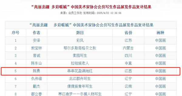 喜讯丨赣州画家陈勇、蒋洪亮作品入选国展 ![]() |