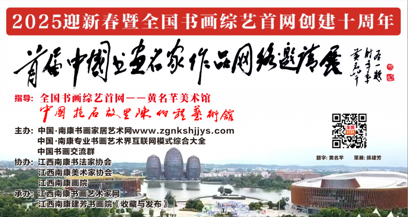 2025迎新春暨全国书画综艺首网创建十周年庆【首届中国书画名家作品网络邀请展】—— 《 展 前 声 明 》 本次书画邀请展的展名由新金陵画派传人、九十一岁高龄的中国大漠山水画(派)创始人——国画艺术大师黄名芊先生友情题写。该展是一个不收取任何形式费用,只为弘扬中华民族优秀文化、艺术传承,和为广大书画艺术家及爱好者们提供互联网交流平台,一个纯属公益的网络邀请展。 网展中的213幅作品皆为《书画邀请展征稿启事》公开发布后应征和应邀而来,全部和本人有直接关联的全国各地书画艺术大家、中国书法兰亭奖、中国美术金彩奖、中国漫画金猴奖等获得者和书画青年才俊、艺术新秀等;创作题材和艺术形式丰富多彩…… 网展绝大部分作品是本人微信好友或传至本人电子邮箱的应邀艺术家个人直接提供,其中含各种形式教导和帮助过自己书画成长的艺术导师、良友,同事,同学等、或曾有书信来往、亲笔签名题赠本人的艺术大咖及部分与本人书画交流和收藏结缘的作品…… 此邀请展《展前声明和受邀艺术家名单》即日起,将在朋友圈、视频号、【江西南康书画艺术家网公众号】及【全国书画综艺首网】公示一周:2025年2月13日——2月19日,2月20日后正式网上展出。 期间有任何问题,如提供的作品版权,署名权、真实性等问题皆由作品提供者负责,发现争议后将第一时间立即处理——撤下,更换或替补等。 【全国书画综艺首网】www.zgnkshjjys.com ★中国 (南康) 专业书画艺术界互联网模式综合大全 ★中国 (南康) 书画家居艺术网 ★江西南康书画艺术家网 ——【首届中国书画名家作品网络邀请展】 声明人: 全国书画综艺首网创始人 陈建芳 2025年2月13日 |